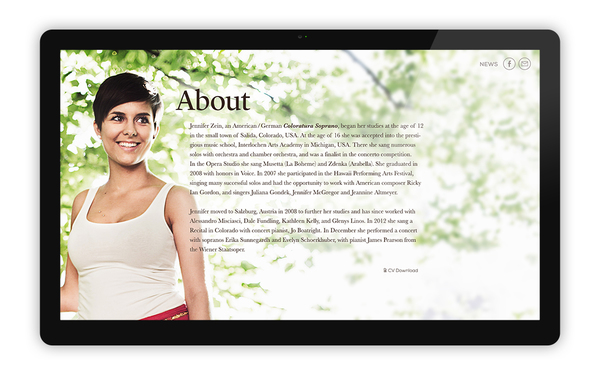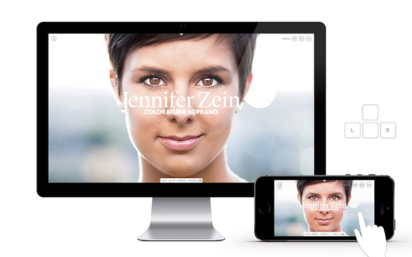 Designkonzept für Bilder- und Gesangsportfolio sowie Repräsentationsfläche der US-amerikanischen Sängerin Jennifer Zein.