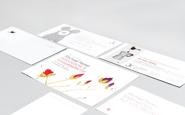 Verschiedene Druckerzeugnisse für unterschiedliche Anlässe und Events des Salzburger Künstlers Michael Ferner